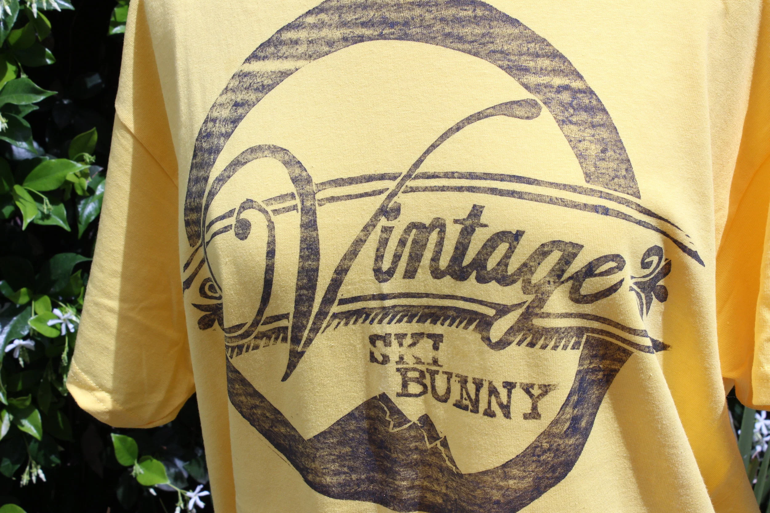 WOMEN › Vintage Ski Bunny Golden - Short Sleeve Image 1 of 4 Image 2 of 4 Image 3 of 4 Image 4 of 4 Vintage Ski Bunny Golden - Short Sleeve $20.00 Vintage Ski BumColor: Golden - Short SleevePrint Color: Black Vintage Ski T-shirts are hand printed using a traditional printing process. Our shirts ship as ready to wear. Size: S M L XL 2xl Quantity: Add To Cart Added! Vintage Ski BumColor: Golden - Short SleevePrint Color: Black Vintage Ski T-shirts are hand printed using a traditional printing process. Our shirts ship as ready to wear.