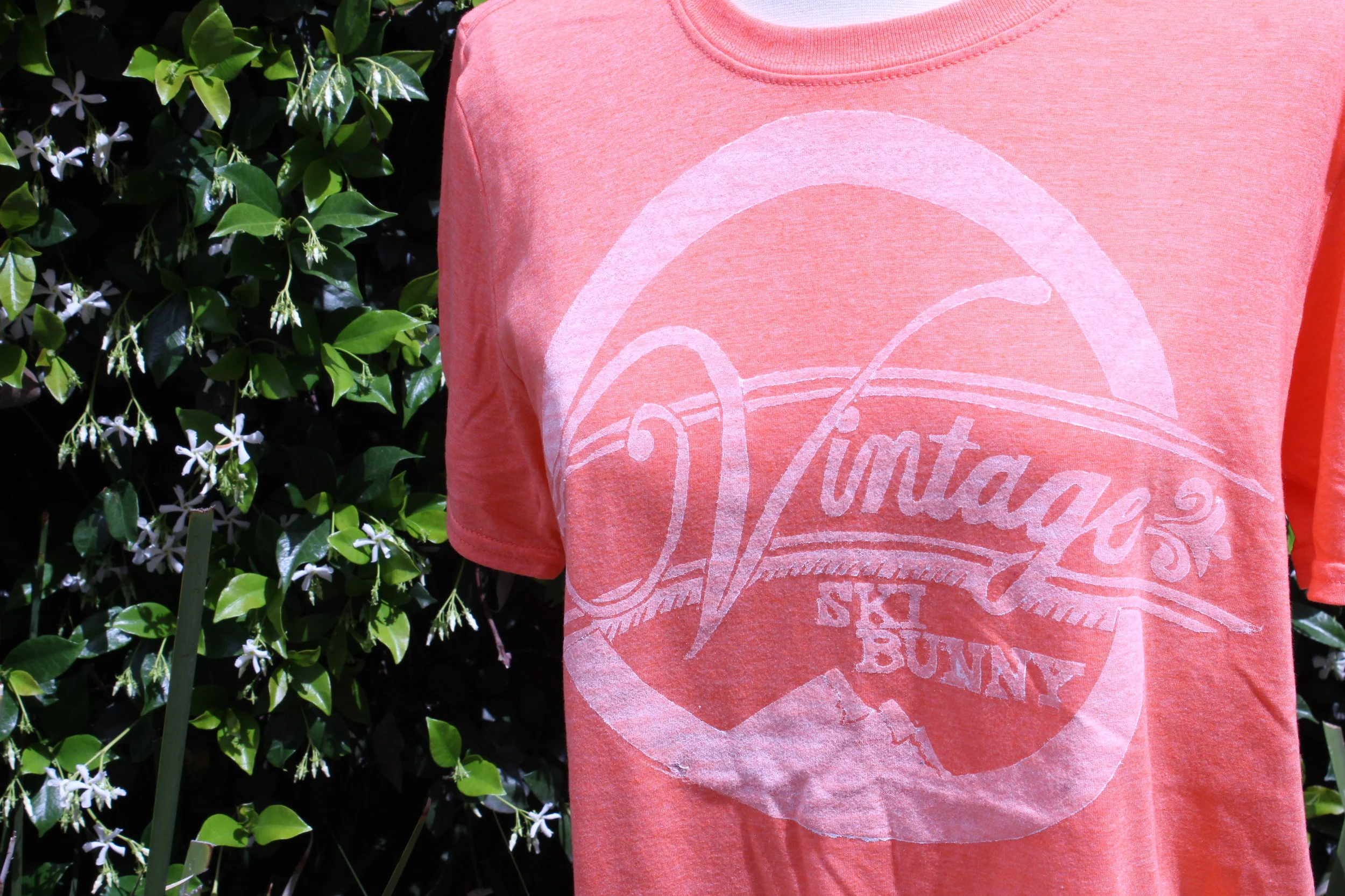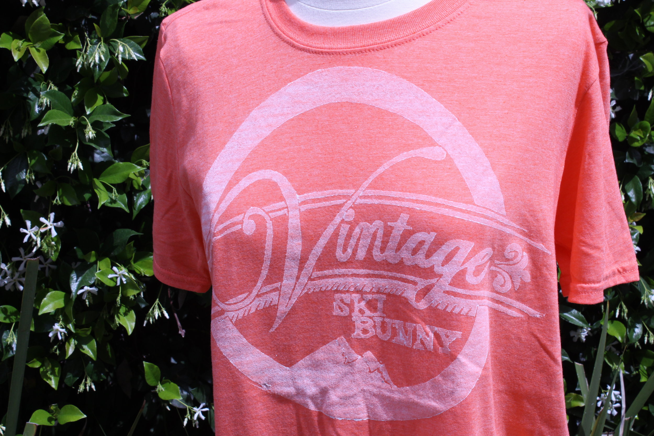 WOMEN › Vintage Ski Bunny - Peach Short Sleeve Image 1 of 4 Image 2 of 4 Image 3 of 4 Image 4 of 4 Vintage Ski Bunny - Peach Short Sleeve $20.00 Vintage Ski BumColor: Peach Short SleevePrint Color: White Vintage Ski T-shirts are hand printed using a traditional printing process. Our shirts ship as ready to wear. Size: S M L XL 2XL Quantity: Add To Cart Added! Vintage Ski BumColor: Peach Short SleevePrint Color: White Vintage Ski T-shirts are hand printed using a traditional printing process. Our shirts ship as ready to wear.
