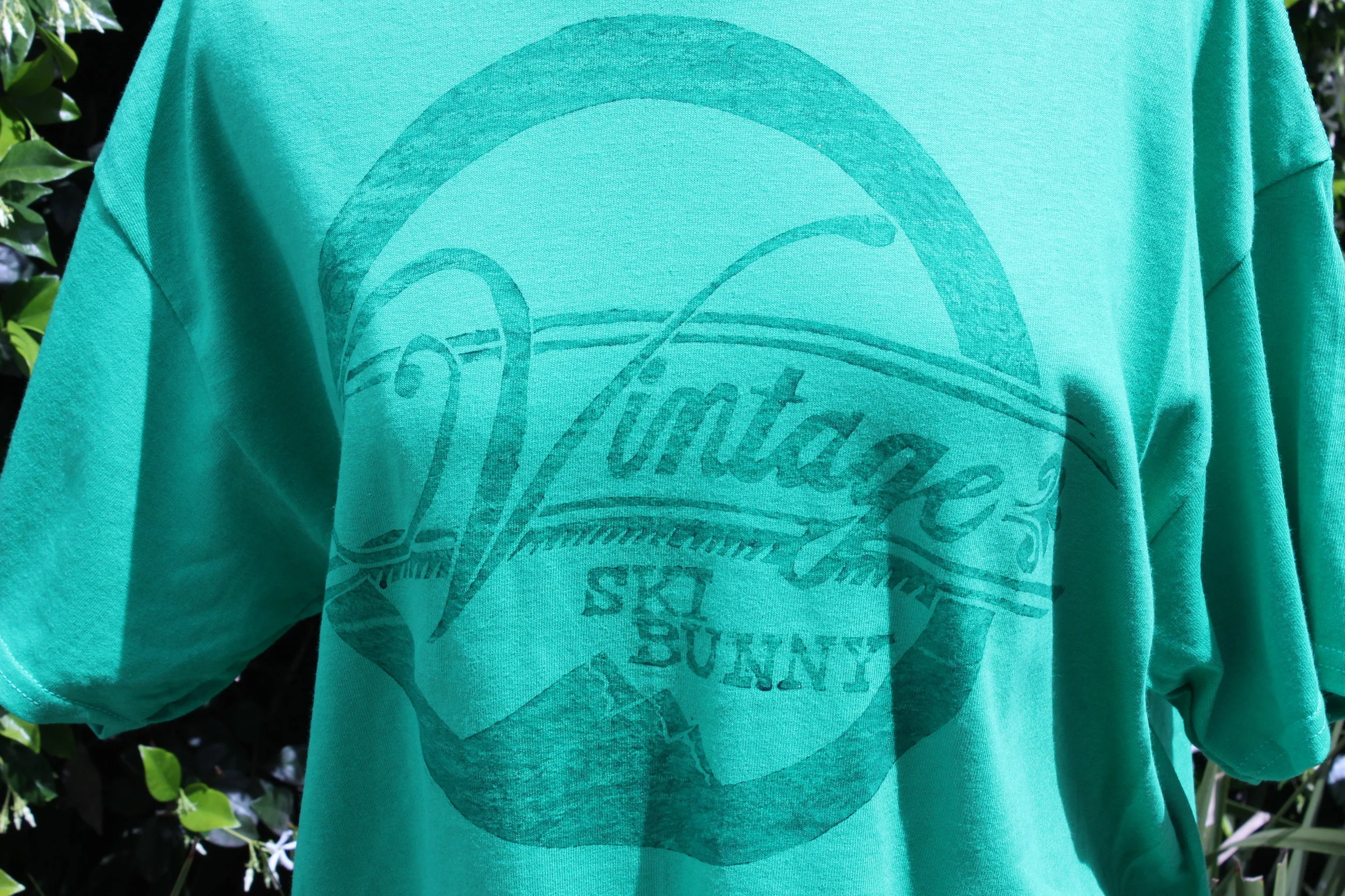WOMEN › Vintage Ski Bunny Tractor Green - Short Sleeve Image 1 of 4 Image 2 of 4 Image 3 of 4 Image 4 of 4 Vintage Ski Bunny Tractor Green - Short Sleeve $20.00 Vintage Ski BumColor: Dark Grey Long SleevePrint Color: Metallic Charcoal Vintage Ski T-shirts are hand printed using a traditional printing process. Our shirts ship as ready to wear. Size: S M L XL 2XL Quantity: Add To Cart Added! Vintage Ski BumColor: Dark Grey Long SleevePrint Color: Metallic Charcoal Vintage Ski T-shirts are hand printed using a traditional printing process. Our shirts ship as ready to wear.